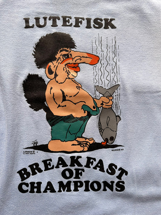 Vintage Lutefisk "Breakfast of Champions" Tee SZ S | Vintage Tee Seattle | Barn Owl Vintage