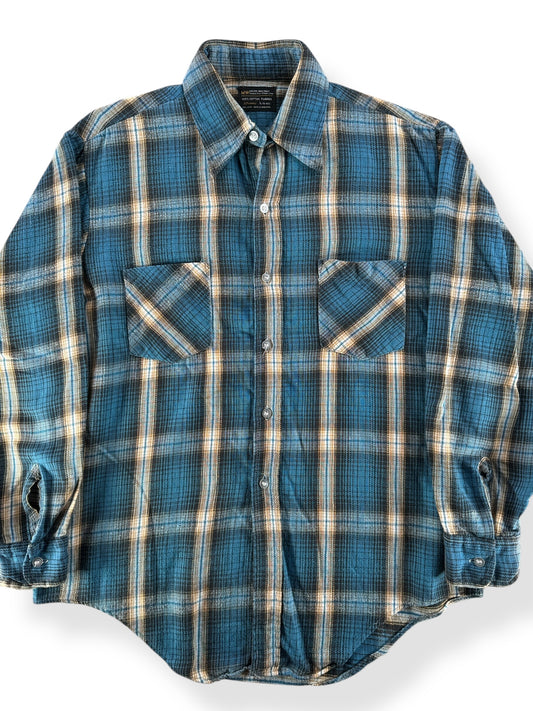 Vintage Blue and Beige Big Mac Cotton Flannel Pearl Snap SZ XL