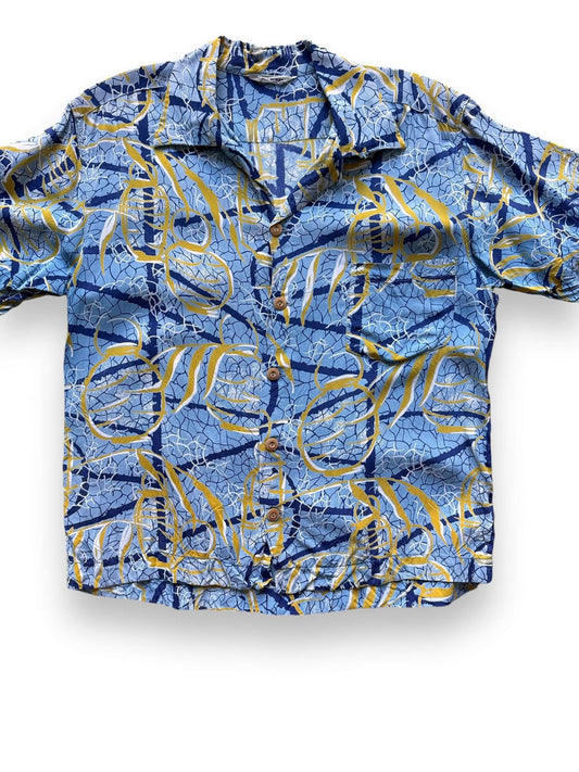 Vintage Blue & Gold Abstract Rayon Aloha Shirt SZ M