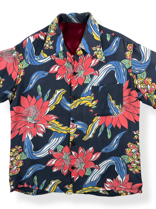 Vintage Blue Made in California Aloha Floral Print Shirt SZ M