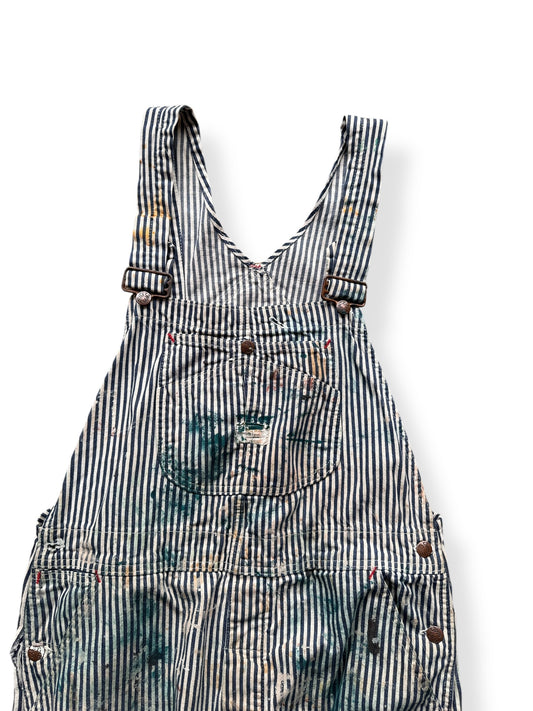 Vintage Blue Paint Patina Packed Big Mac Hickory Stripe Overalls W38
