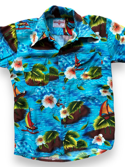 Vintage Blue Patterned Hawaiian Holiday Rayon Shirt SZ S | Seattle Vintage Hawaiian Shirt | Barn Owl Vintage Clothing Seattle