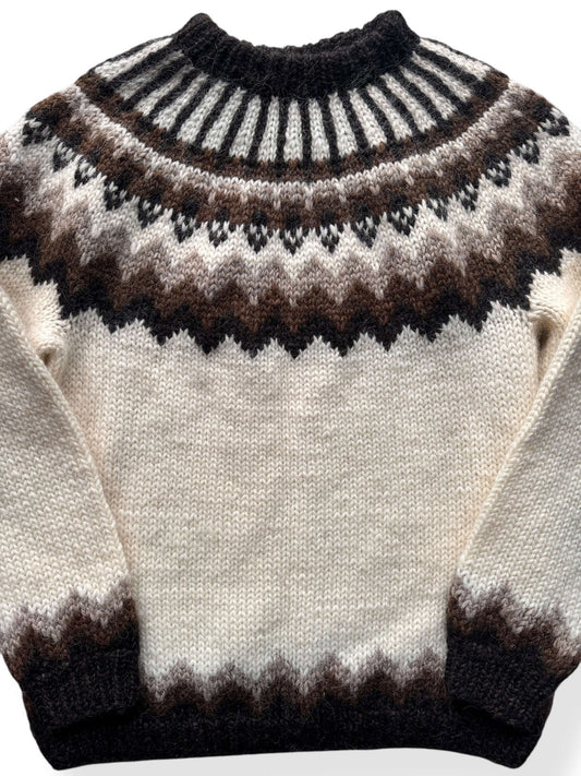 Vintage Brown & Cream Handknit Icelandic Sweater SZ XL