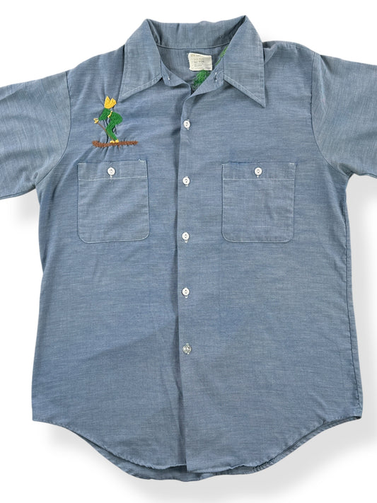 Vintage Embroidered Short Sleeve Chambray Shirt SZ M