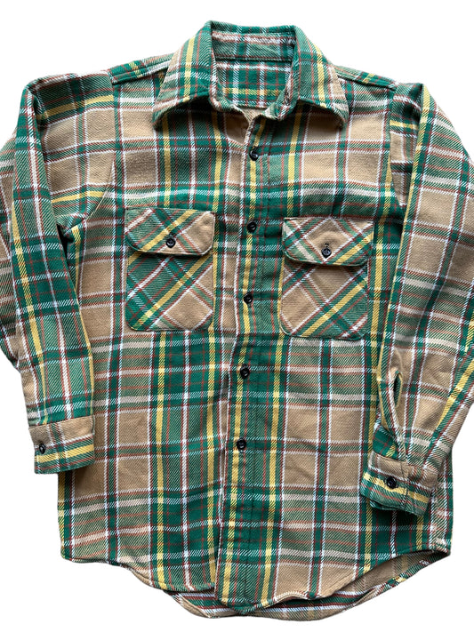 Vintage Green Brown Yellow Cotton Blend Flannel SZ M | Vintage Cotton Flannel Seattle | Barn Owl Vintage Seattle