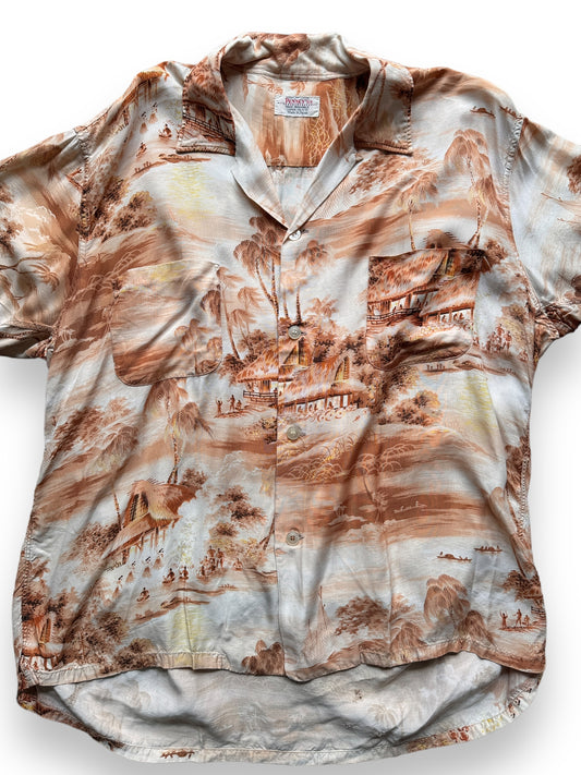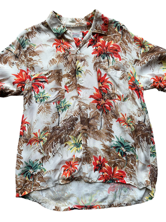 Vintage Made in Japan Orange/Brown Palm Tropical Scene Penney's Aloha Shirt SZ L