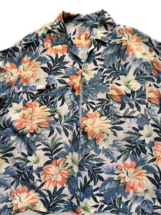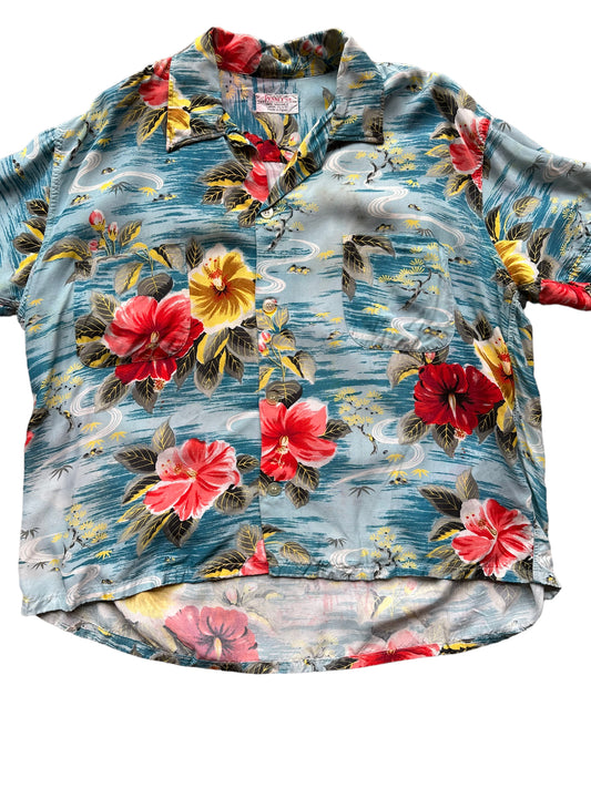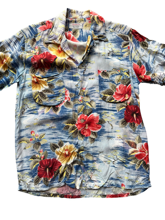 Vintage Made in Japan Penney's Blue/Pink/Yellow Floral Aloha Shirt SZ L | Seattle Vintage Rayon Hawaiian Shirt | Barn Owl Vintage Clothing Seattle
