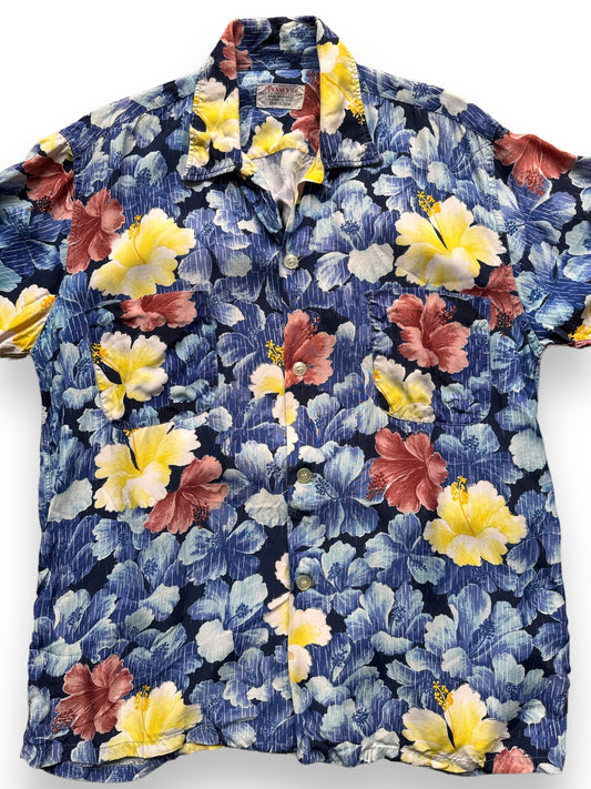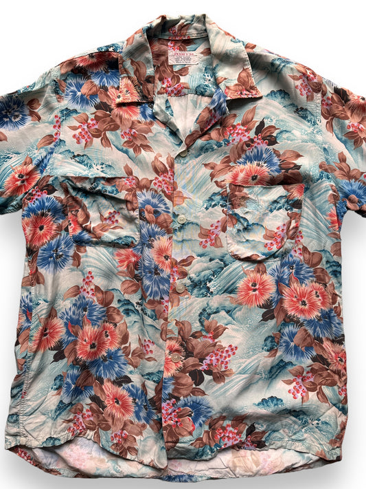 Vintage Made in Japan Blue/Pink Floral Penney's Aloha Shirt w/ Repairs SZ M