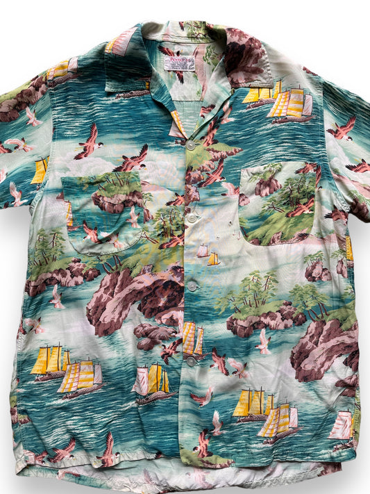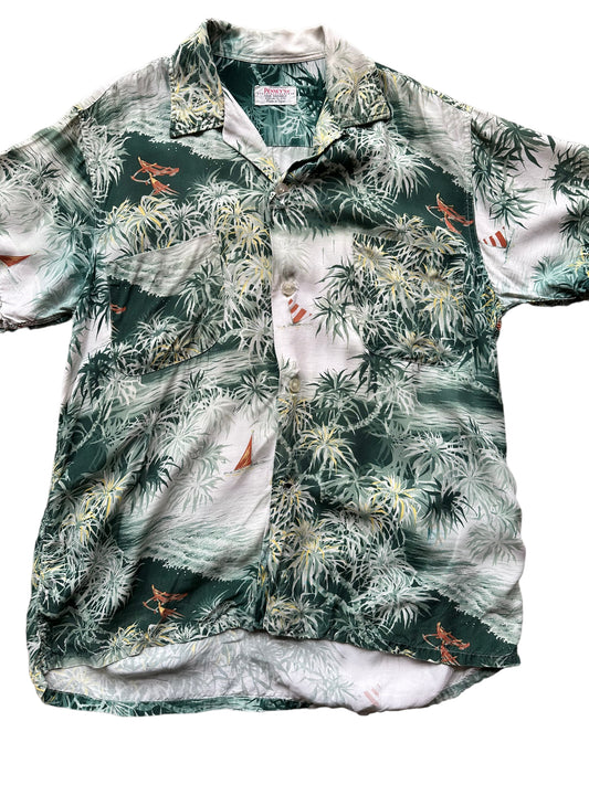 Vintage Made in Japan Boats and Birds Motif Penney's Aloha Shirt SZ M