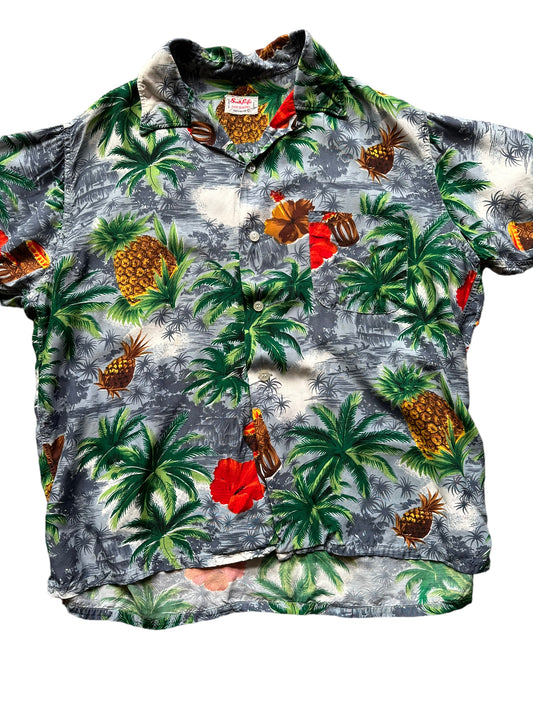 Vintage Made in Japan South Pacific Grey Pineapple Aloha Shirt SZ L | Seattle Vintage Rayon Hawaiian Shirt | Barn Owl Vintage Clothing Seattle
