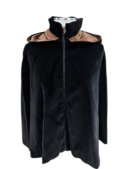 1950s Black and Brown Hooded Velvet Capelet S-L