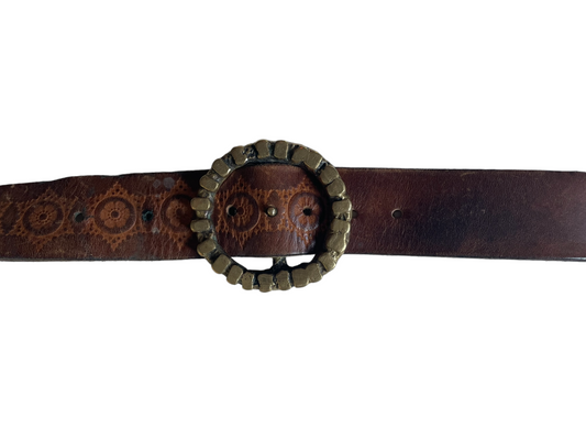 Vintage 1960s Brass Buckle and Leather Belt | Barn Owl Vintage | Seattle Vintage Belts and Buckles