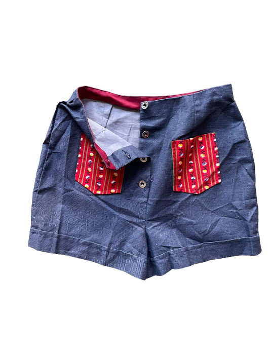 Vintage 1970s Denim Shorts with Patchwork Pockets SZ S | Barn Owl Vintage Ladies Clothing | Seattle Vintage Shorts