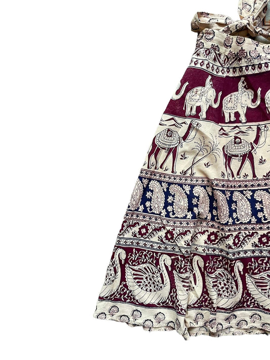 Vintage 1970s Indian Cotton Elephant Wrap Skirt SZ S-XL | Barn Owl Ladies Clothing | Seattle True Vintage