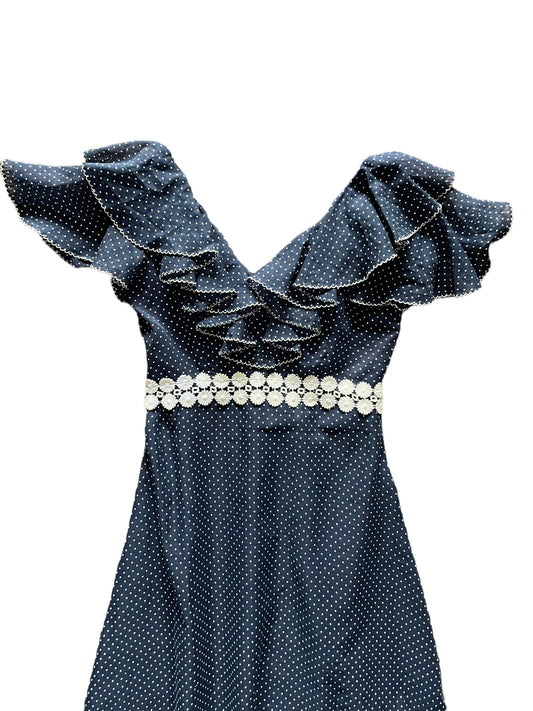 Vintage 1970s Navy Blue Swiss Dot Maxi Dress SZ S | Barn Owl Vintage Dresses | Seattle True Vintage