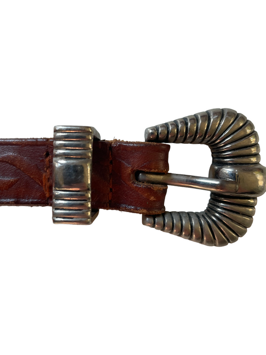Vintage 1980s Tooled Leather Belt | Barn Owl Vintage | Seattle Vintage Belts and Buckles