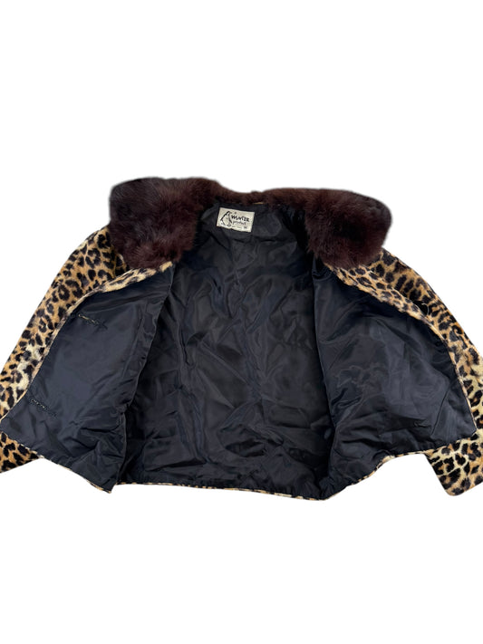 1960s A Winter Product Leopard and Mink Cropped Jacket M