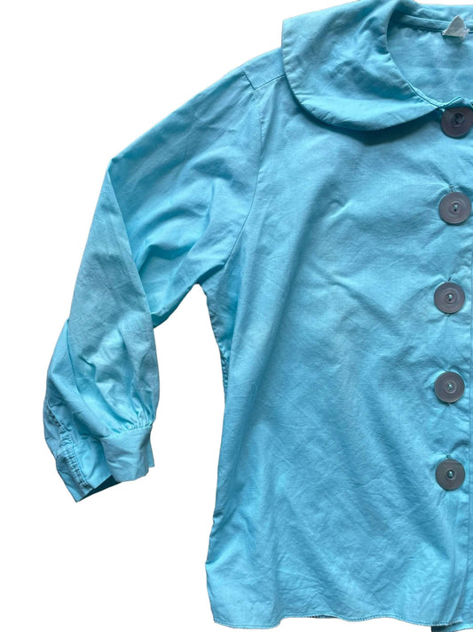 1960s Aqua Blue Peter Pan Collar Button Up M-L