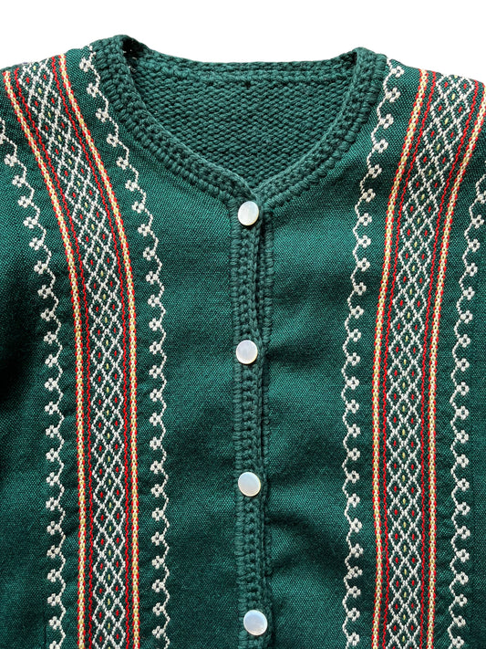 Vintage 1940s Green Wool Embroidered Cardigan | Barn Owl Ladies Sweaters | Seattle Vintage