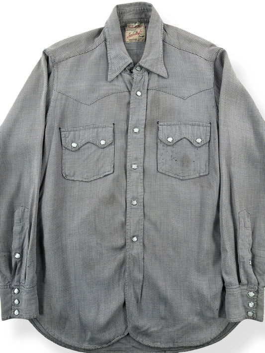 Vintage Pincheck Tex Style Gabardine Pearl Snap Shirt SZ S AS IS