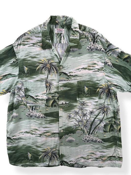 Vintage Penney's Green Themed Rayon Aloha Shirt SZ XL