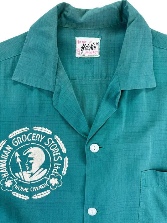 1950s Hale Niu MJB Coffee Hawaiian Grocery Bowling Shirt M