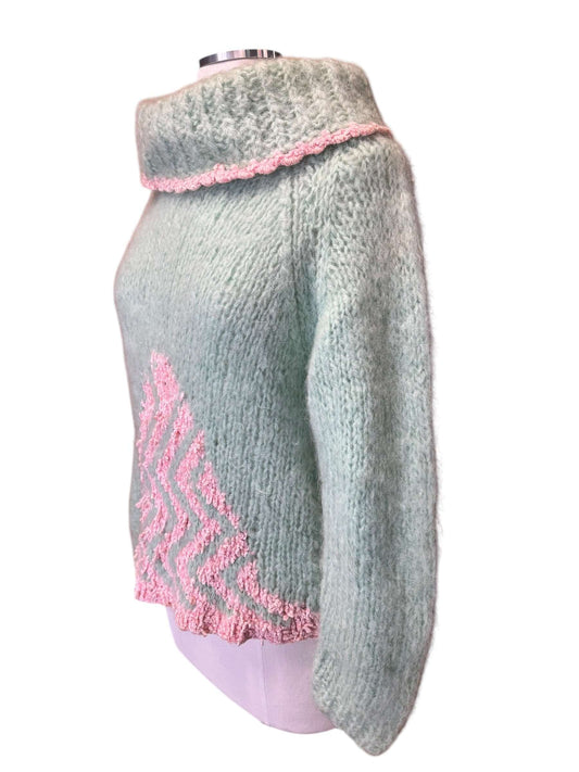1950s Nanette Mint Mohair Cowl Neck Sweater L