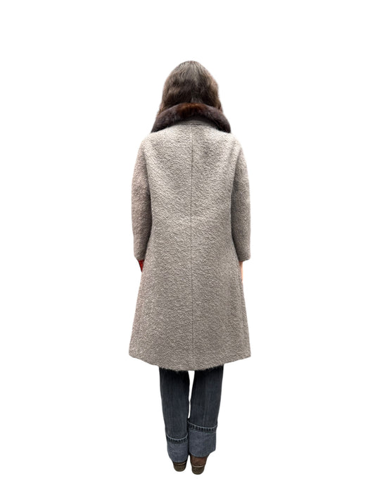 1960s Bouclé Mink Fur Collar Coat L