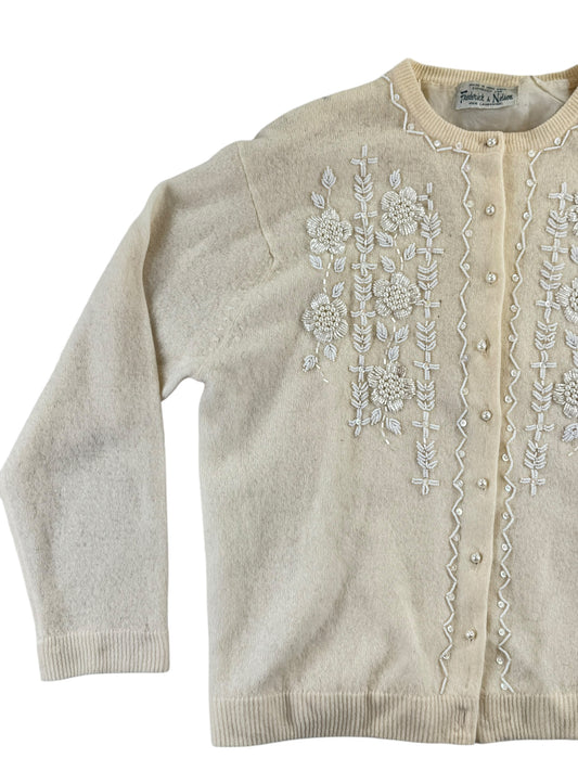 1950s Frederick and Nelson Beaded Lambswool Cardigan XL
