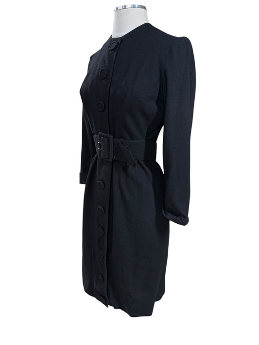 1960s Black Wool Button Up Dress S
