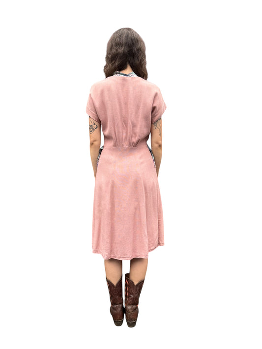 1940s Radlo's Pink Cotton Dress with Plaid Pockets S-M