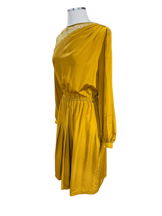 1940s Mustardy Rayon and Lace Dress M
