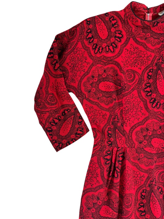1950s Red Paisley Wiggle Dress M