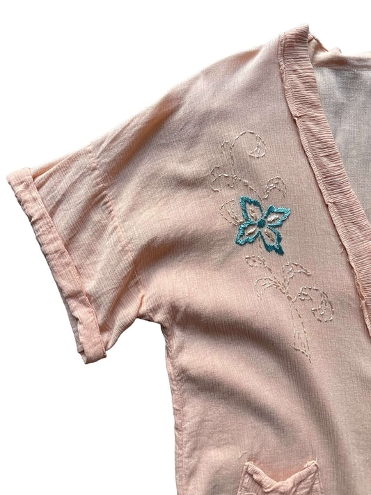 1930s-40s Pale Pink Crepe Rayon Embroidered Robe L