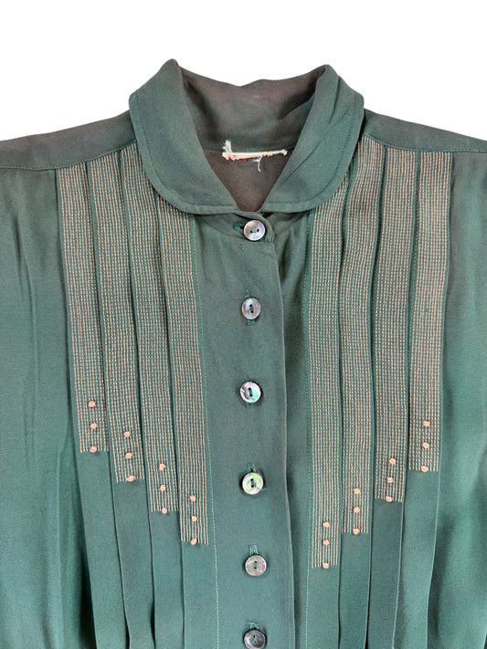 1940s Green Rayon Pleated Dress M