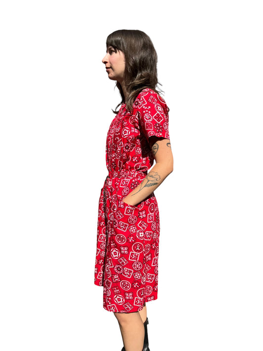 Vintage Tregos Red Bandana Dress SZ S | Barn Owl Vintage Dresses| Seattle Vintage Dresses