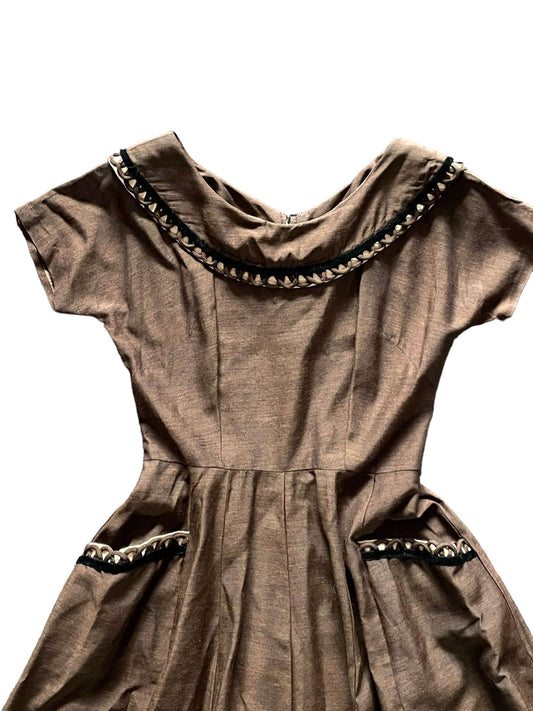 Vintage 1950s Brown Dress With Velvet Trim SZ S