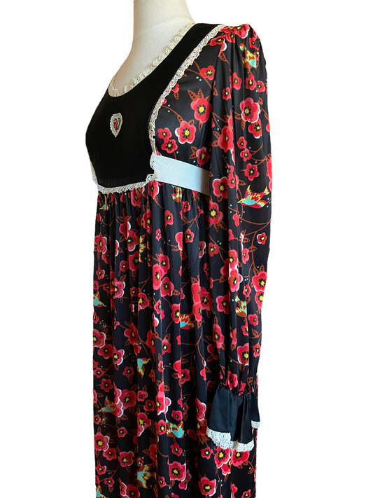 Vintage 1970s Cherry Blossom Maxi Dress SZ S-M | Barn Owl Vintage | Seattle Vintage Dresses