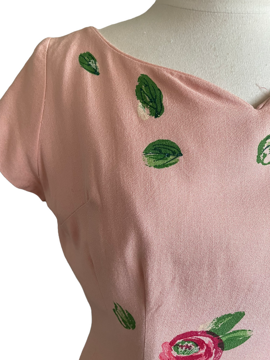 Vintage 1950s Jackie Morgan Painted Roses Dress SZ S