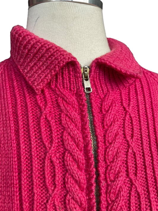 Vintage 1940's Wool Hand Knit Magenta Zip Up Cardigan Sweater | Barn Owl Vintage | Seattle True Vintage
