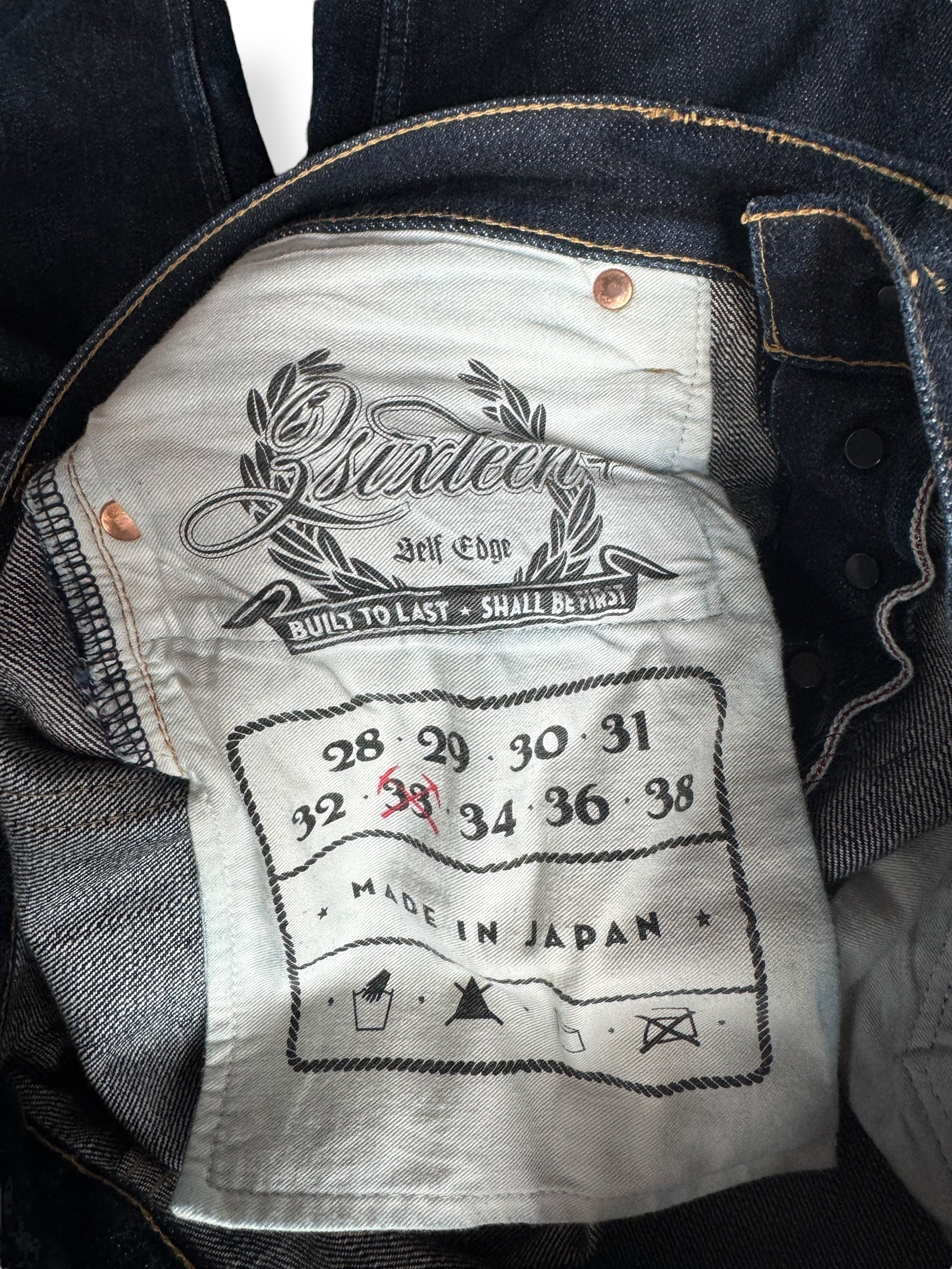 3sixteen 21BSP tapered fit Japanese selvedge jeans few washes. Made in Japan. Tagged W33 but measures out to a W34. Looks to have been washed a few times. Lightly worn throughout, with some faint staining here and there. Overall in good condition.